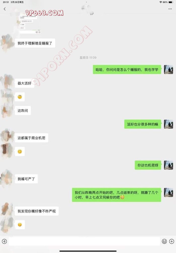 第二天跟妹子聊战果,妹子发了他们群里的姐妹们聊其他男友如何睡各自姐妹的内容,妹子也终于直接我的厉害